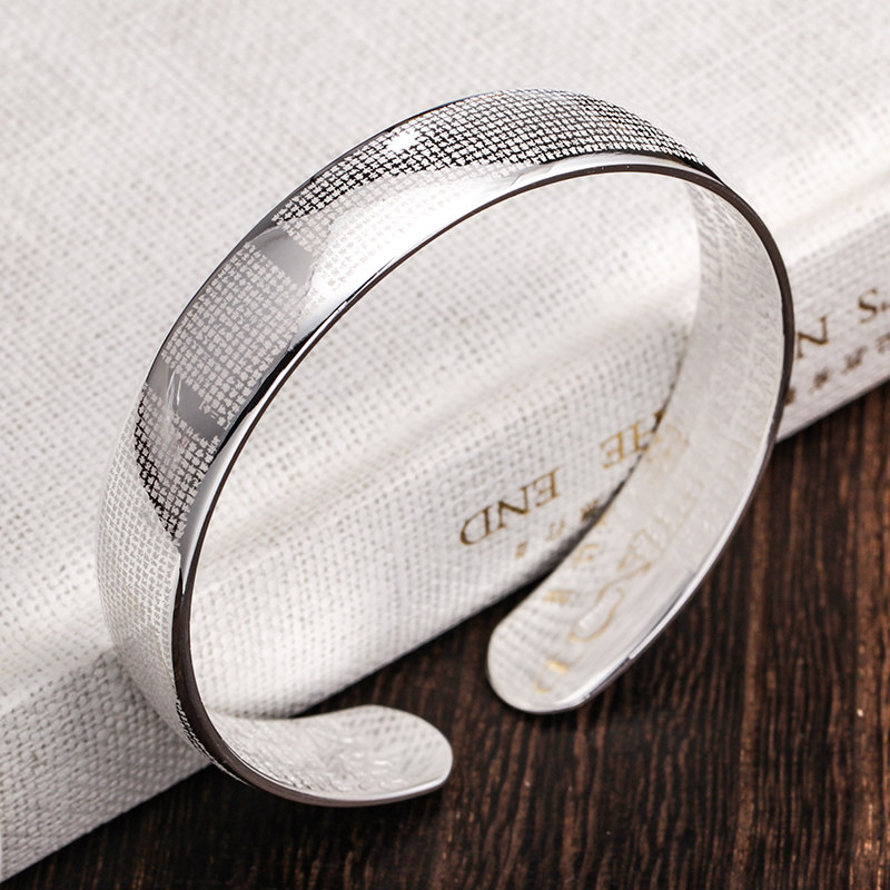 Jiuxi silver floor S999 foot silver lenght, full text bracelet pure silver heart warp with female silver bracelet opening Buddha via silver bracelet