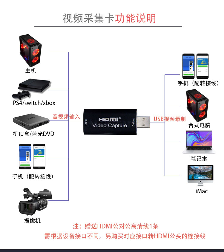 hdmi collection kasusb collection card ps4 Taobao switch fighting fish education tiger tooth live video recording machine
