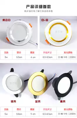 Three-color dimming downlight 3w embedded small ceiling and other living room ceiling household hole lamp 7 5 drilling 8 cm black