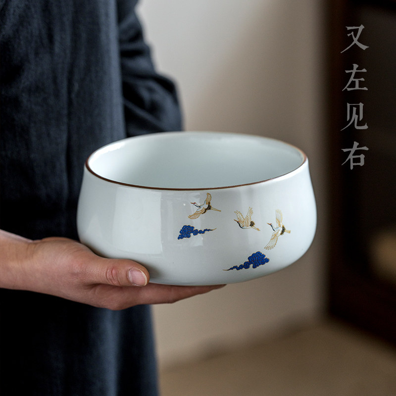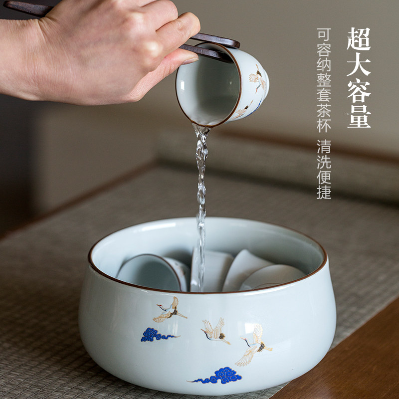 Jingdezhen hand-painted ceramic tea wash water pen wash kung fu tea set tea ceremony accessories large water pot hydroponic flower pot