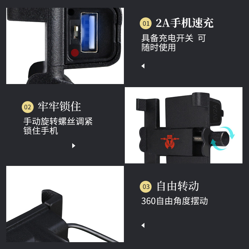 Locomotive Cell Phone Rack Fixed Quick Detached Mobile Phone Hanging Rope Charging Multifunction Water Discharge Outside of the car Rider On-board Accessories