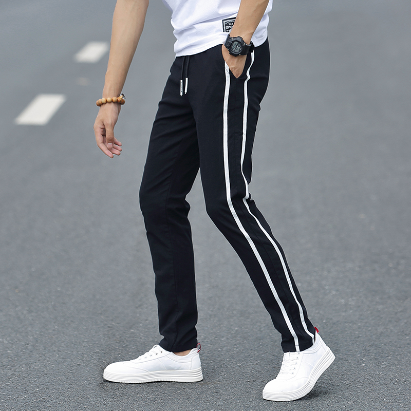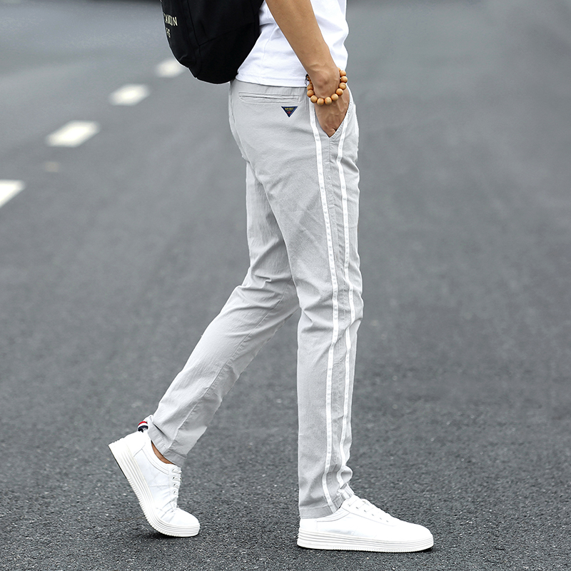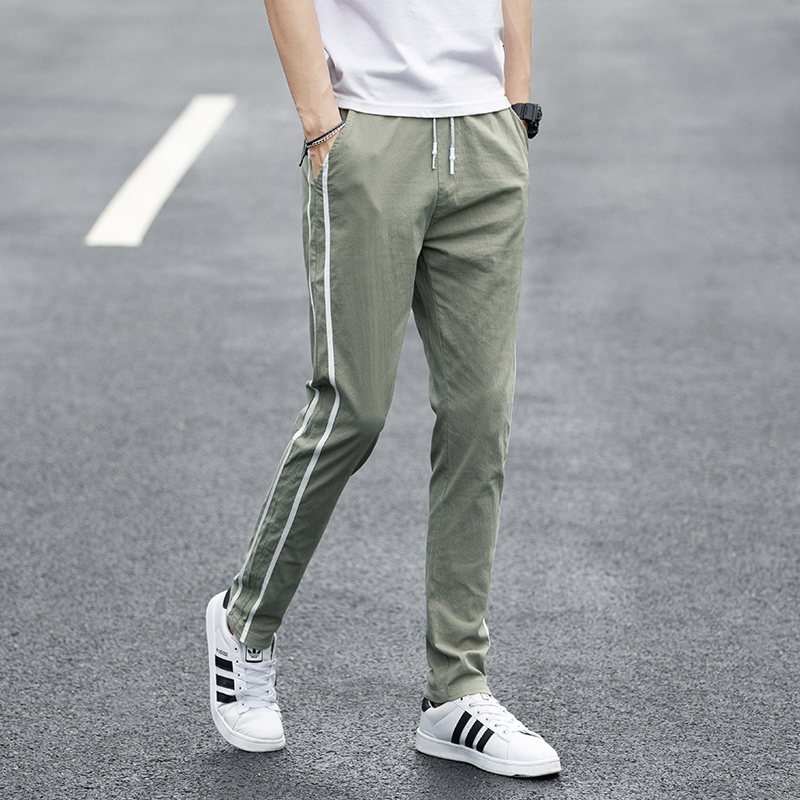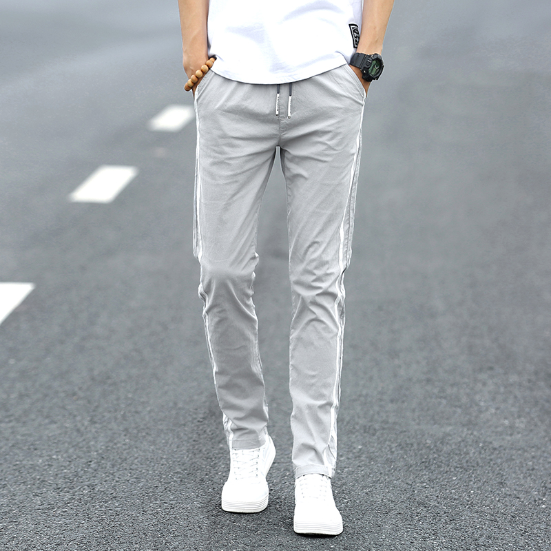 Men's casual long pants summer slim fit tightness waist straight cylinder loose Korean version trendy 100 lap ice wire pants male