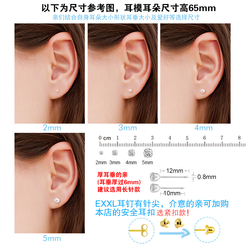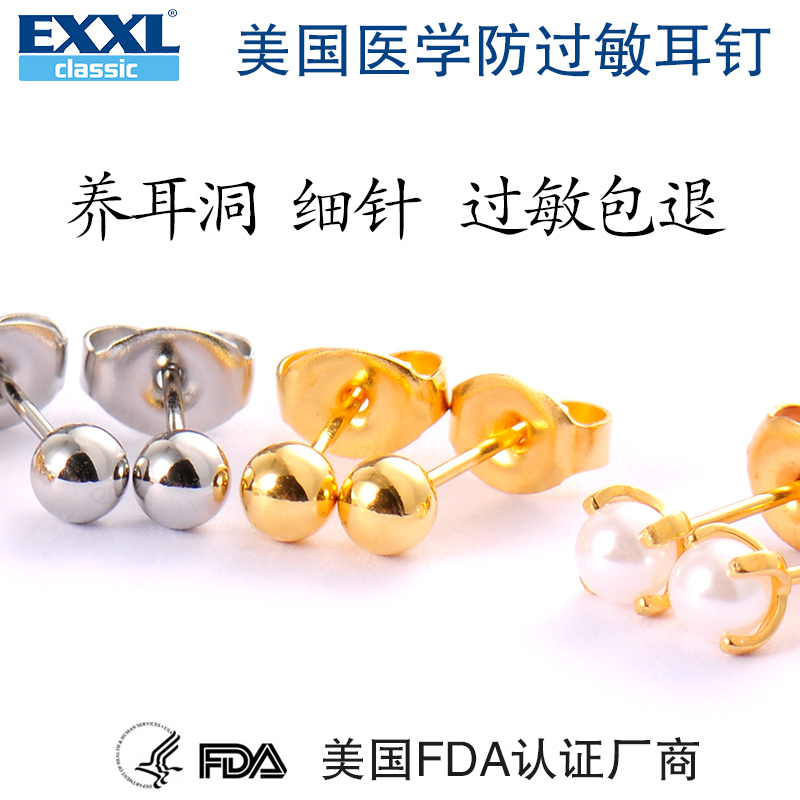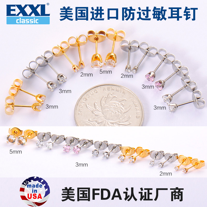 United States EXXL imported hypoallergenic stud earrings, non-allergic earrings, simple zirconium diamond fine needle, Doudou, pierced ears, female