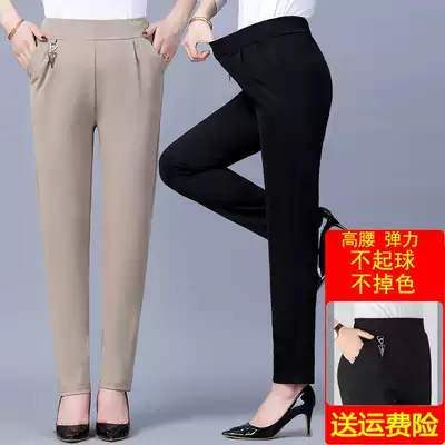 Mother pants spring and autumn straight high waist summer thin three-point pants middle-aged and elderly women's winter clothes plus velvet thick trousers to wear outside