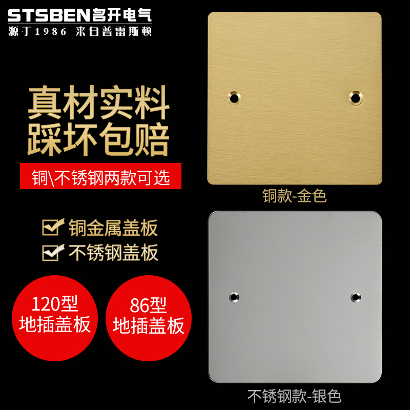 86 type stainless steel ground plug cover plate ground plug bottom box cover with outlet hole stainless steel ground plug blind plate