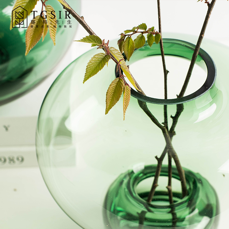 Modern minimalist green transparent glass vase ornaments Nordic living room table hydroponic flower arrangement flower ornaments