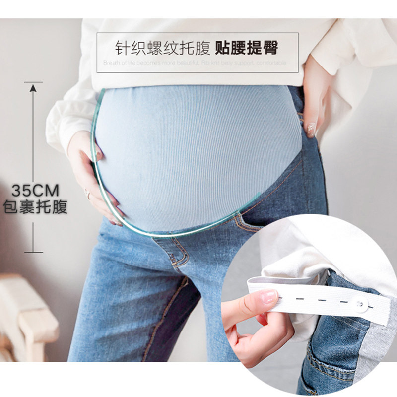 Pregnant woman pants spring and autumn outside wearing thin spring Summer Spring Fashion Chauma Fashion hit bottom 90% jeans small-footed belly