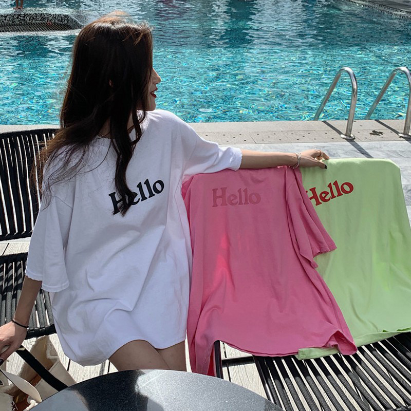 Tide Card Net Red Letters Short Sleeve T-shirt Woman Loose 2022 Summer new women's dress bf Wind in the long version of the brief jacket
