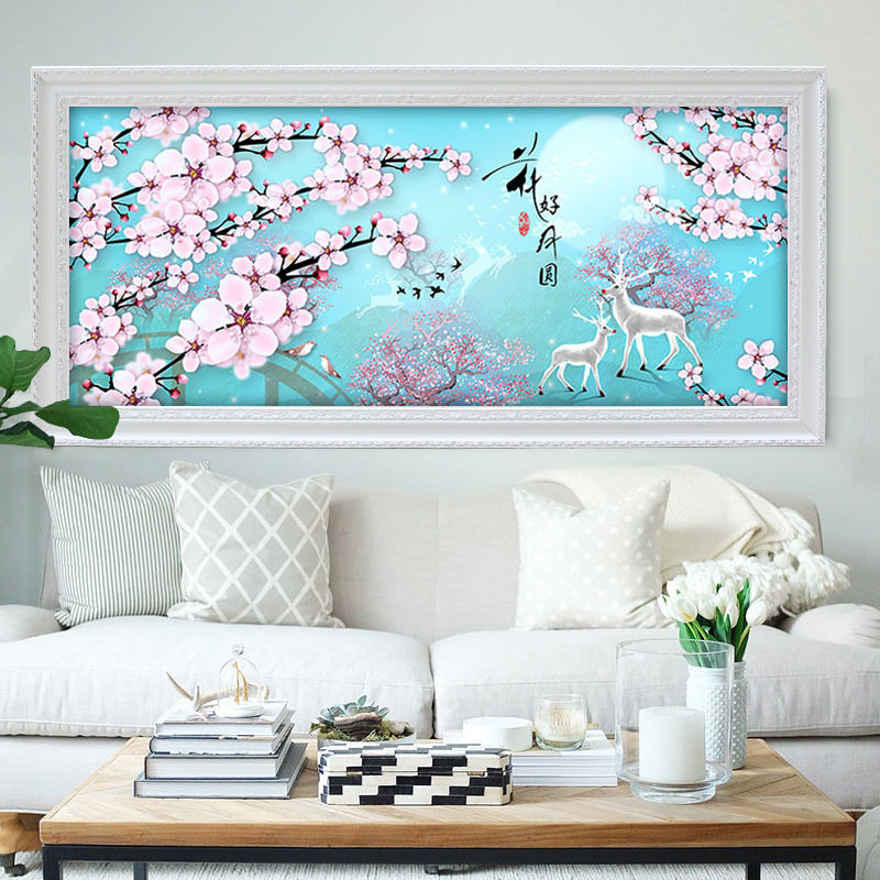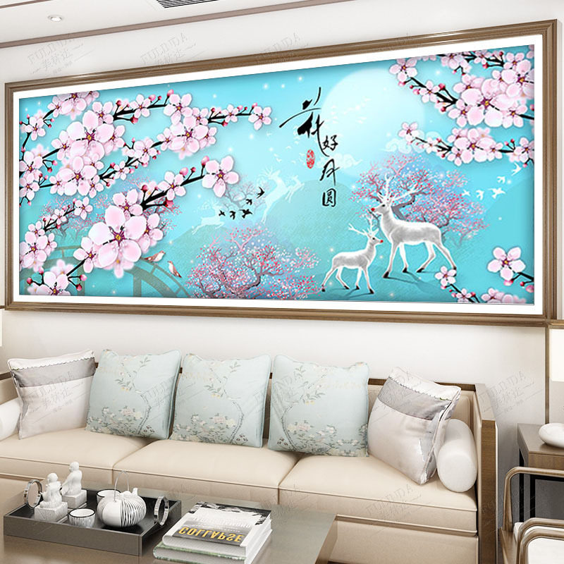 Purely hand-pasted diamond painting finished flower good moon full fortune elk new living room scenery large decorative painting
