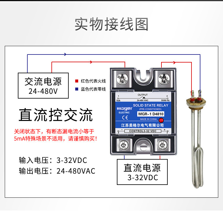 Jiangsu Meghel single-phase solid-state relay MGR-1 D4840 SSR-40DA 40A SSR-40DA DC controlled AC