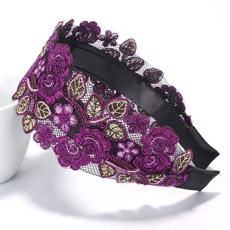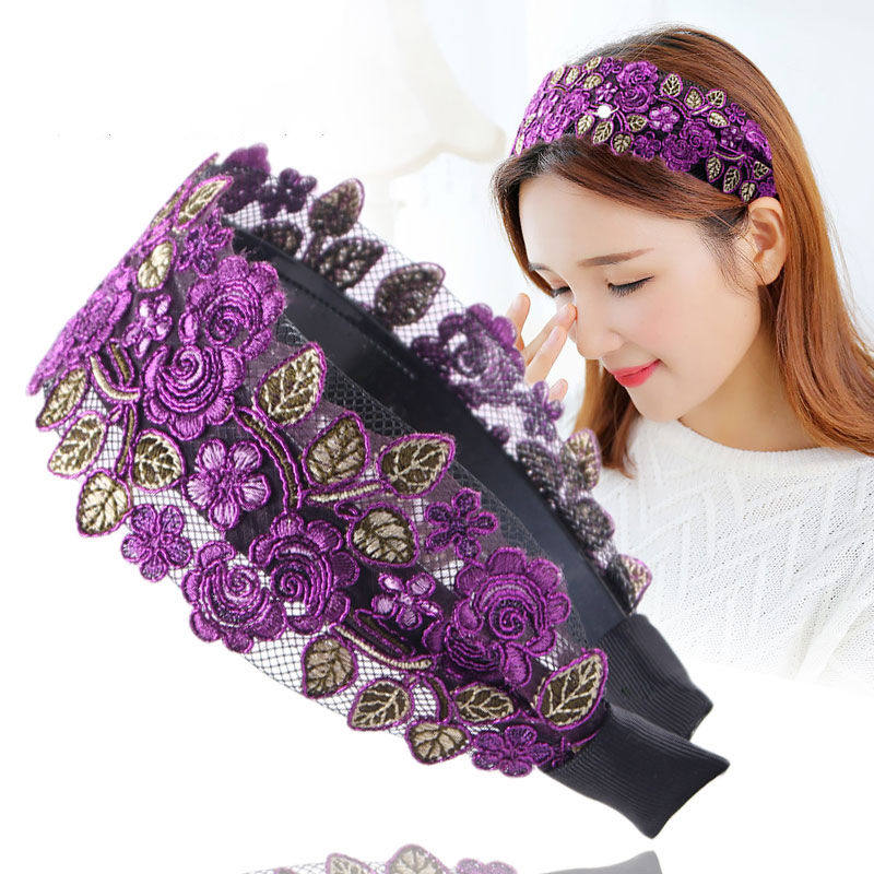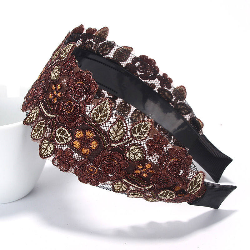 Korean Version Embroidered Hair Stirrup Wide Side Shade White Hair Card With Teeth Non-slip Hair Stirrup Hair Adorned with Broken Hair National Wind Hair Accessories