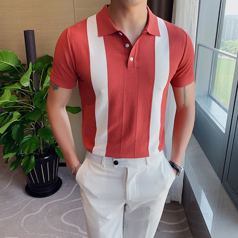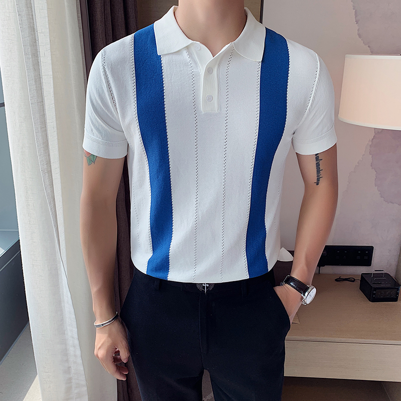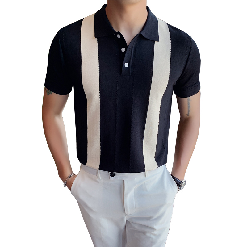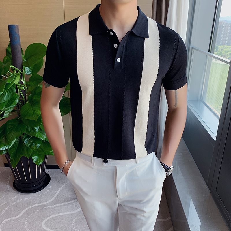 Summer polo shirt man short sleeve ice silk T-shirt high-end Korean version of body hit color flipped knitted thin and casual T-shirt
