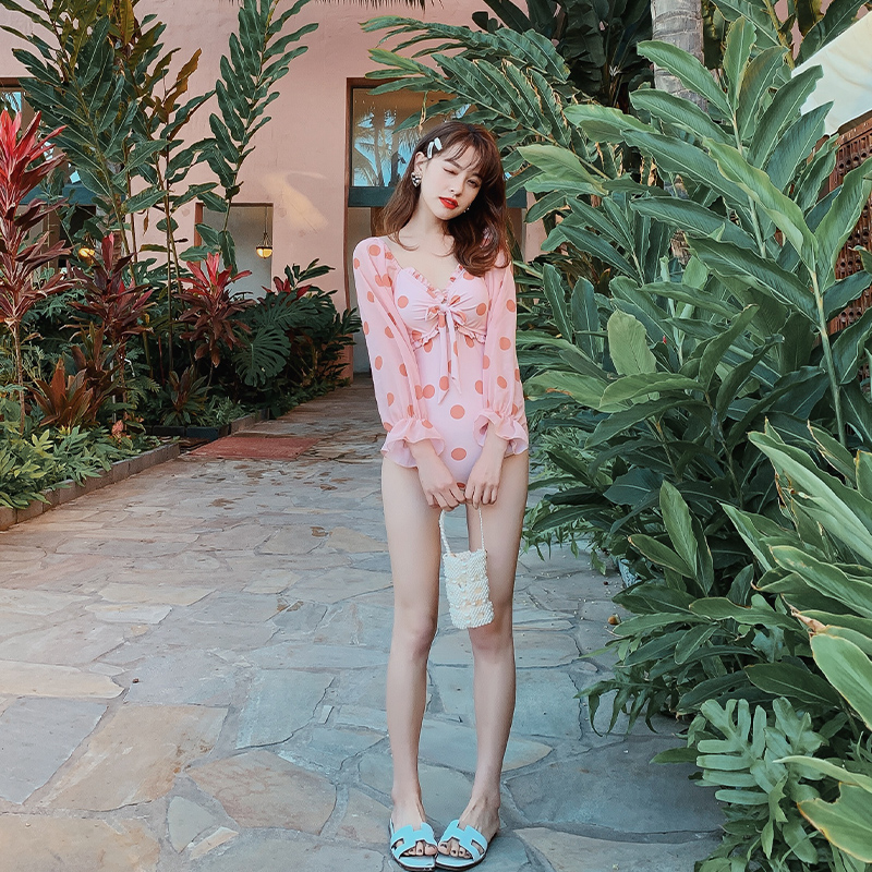 Yimeishan swimsuit women's 2022 new one-piece belly cover slim fashion sexy long-sleeved ins hot spring swimsuit