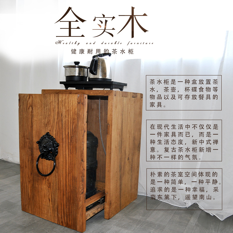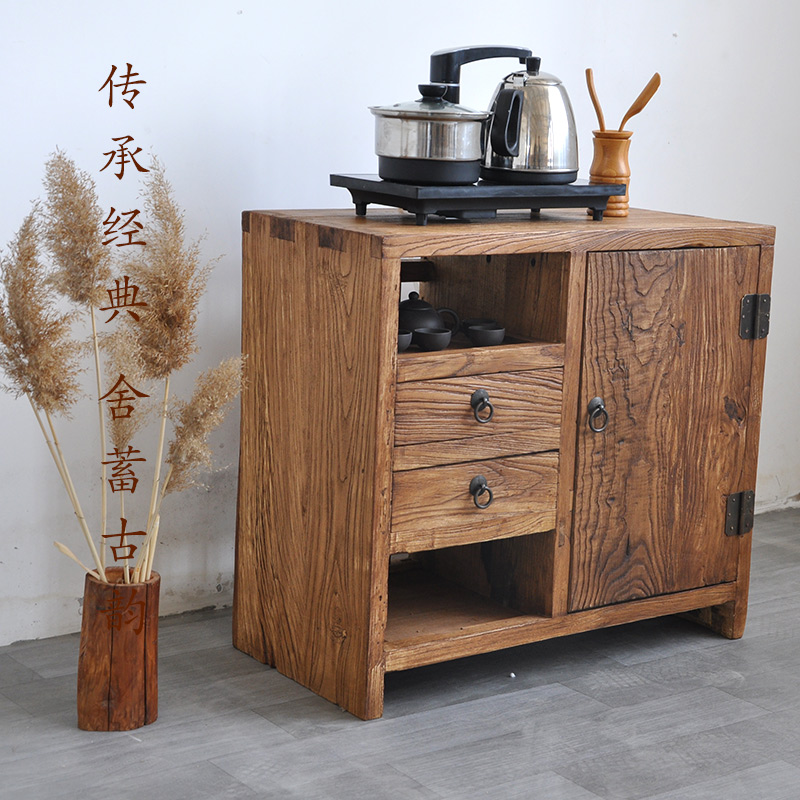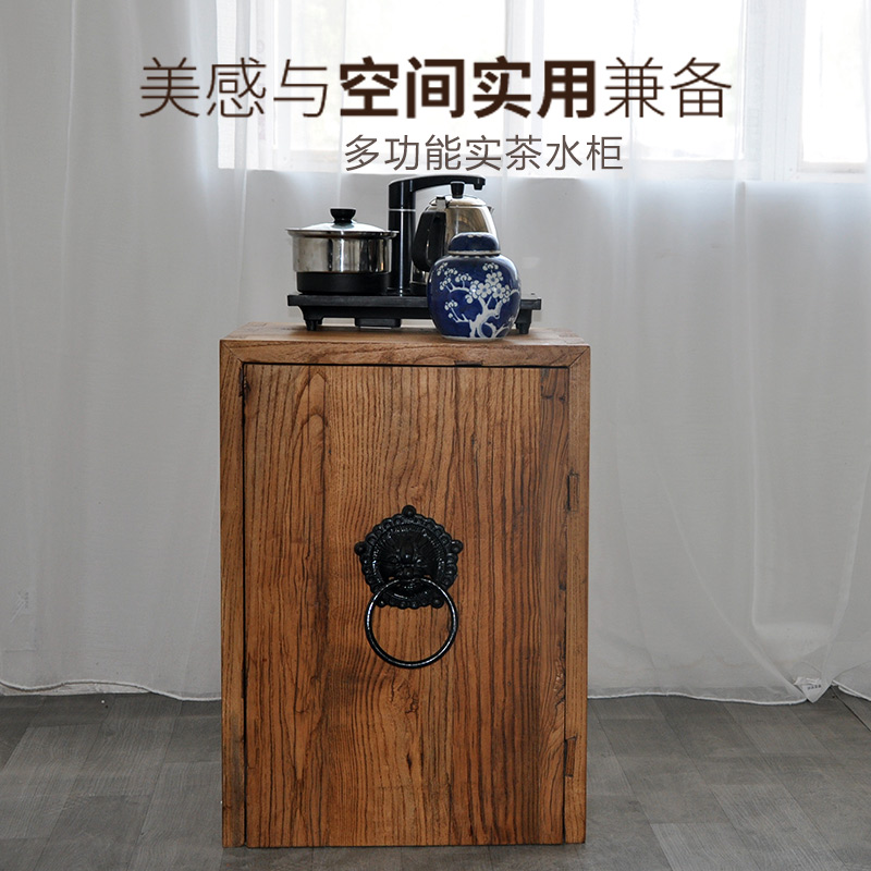 Solid wood tea water cabinet old elm wood minimalist tea water table living room mobile ancient and simple dining side cabinet Zen New Chinese tea side cabinet-Taobao