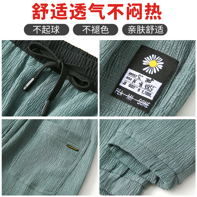 Summer ultra thin ice wire air conditioning 9 pants sports leisure nine pants men relaxed tight tight leg linen pants