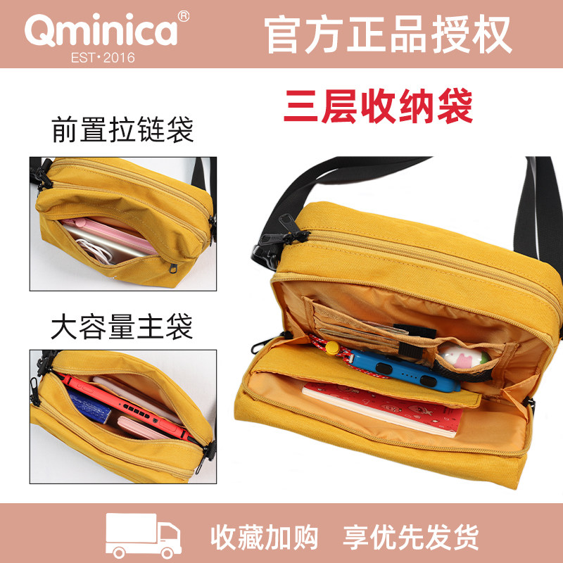 Qminica Japanese niche light walking baby bag travel large-capacity passport bag shoulder bag women's messenger bag