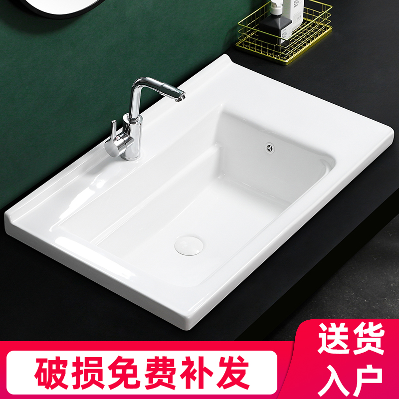 One-piece ceramic wash Household face wash sink basin Balcony wash basin basin Semi-embedded single sink without washboard