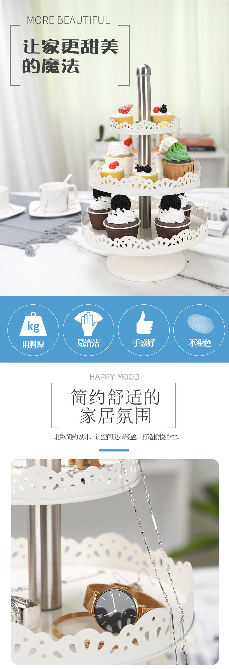Nordic Style Delicate Dessert Terrace Brief Multilayer Pendulum Table Fruit Tray High Foot Tray Rack Jewelry Containing Tray