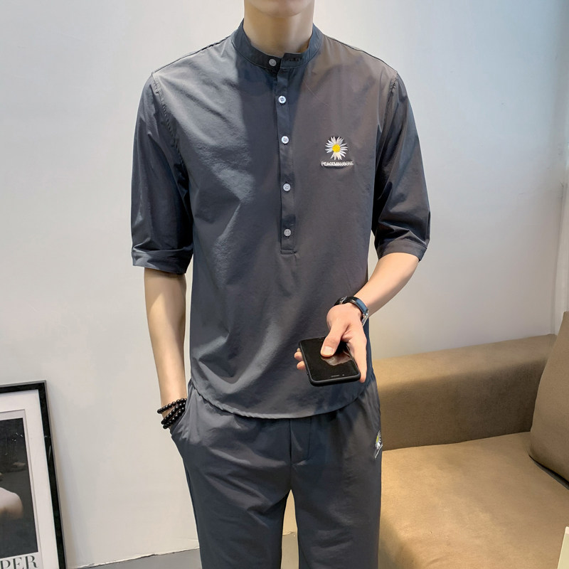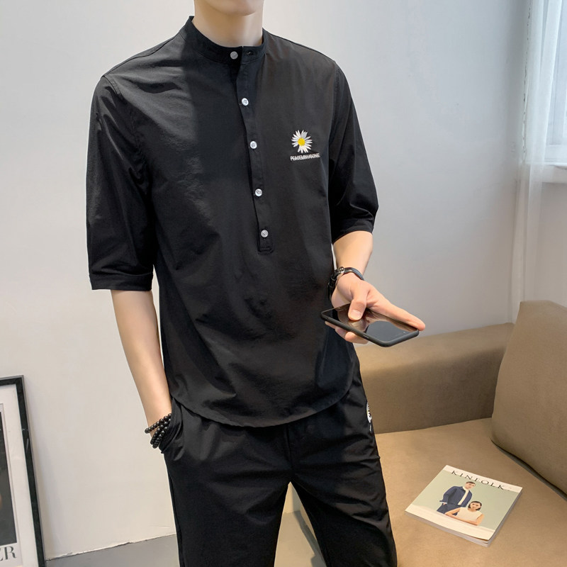 Men's short-sleeved T-shirt suit summer 2020 thin clothes small daisy design mid-sleeve set of trendy matching tops