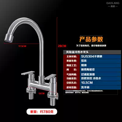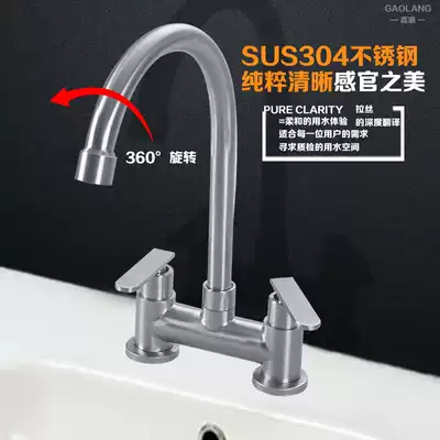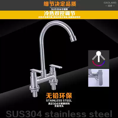 Washing basin faucet 304 stainless steel hot and cold basin double hole three hole basin faucet powder room washing hands household