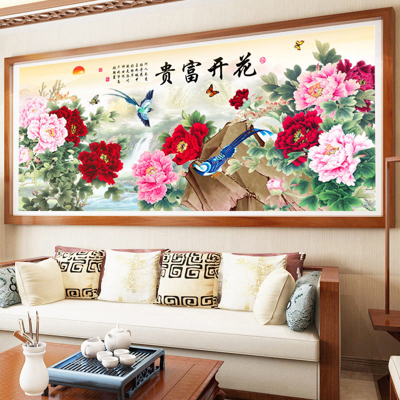 Cross stitch 2021 thread embroidery new living room hand-made large-scale flower blooming rich and full of embroidery peony home self-embroidery