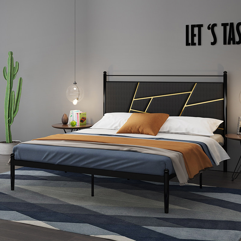 Nordic Iron Bed Double Bed 1 8m 1 5m Economy Simple Hotel Bed Frame Black Minimum Iron Bed