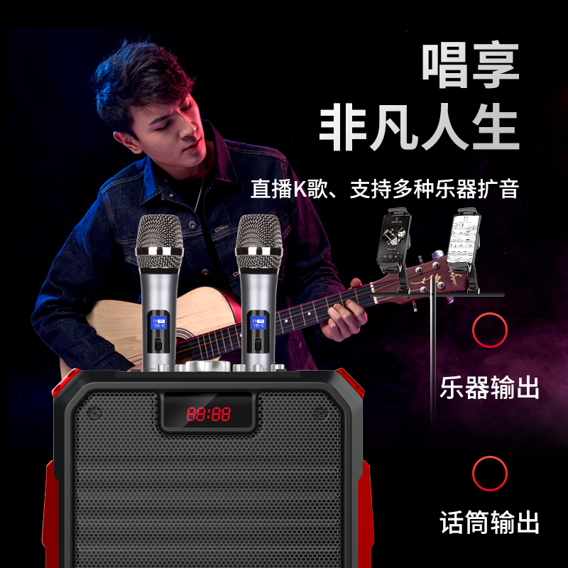 Konka square dance sound with wireless microphone Portable mobile high-power subwoofer comes with sound card All net red outdoor singing performance K song shake sound fast hand live Bluetooth speaker