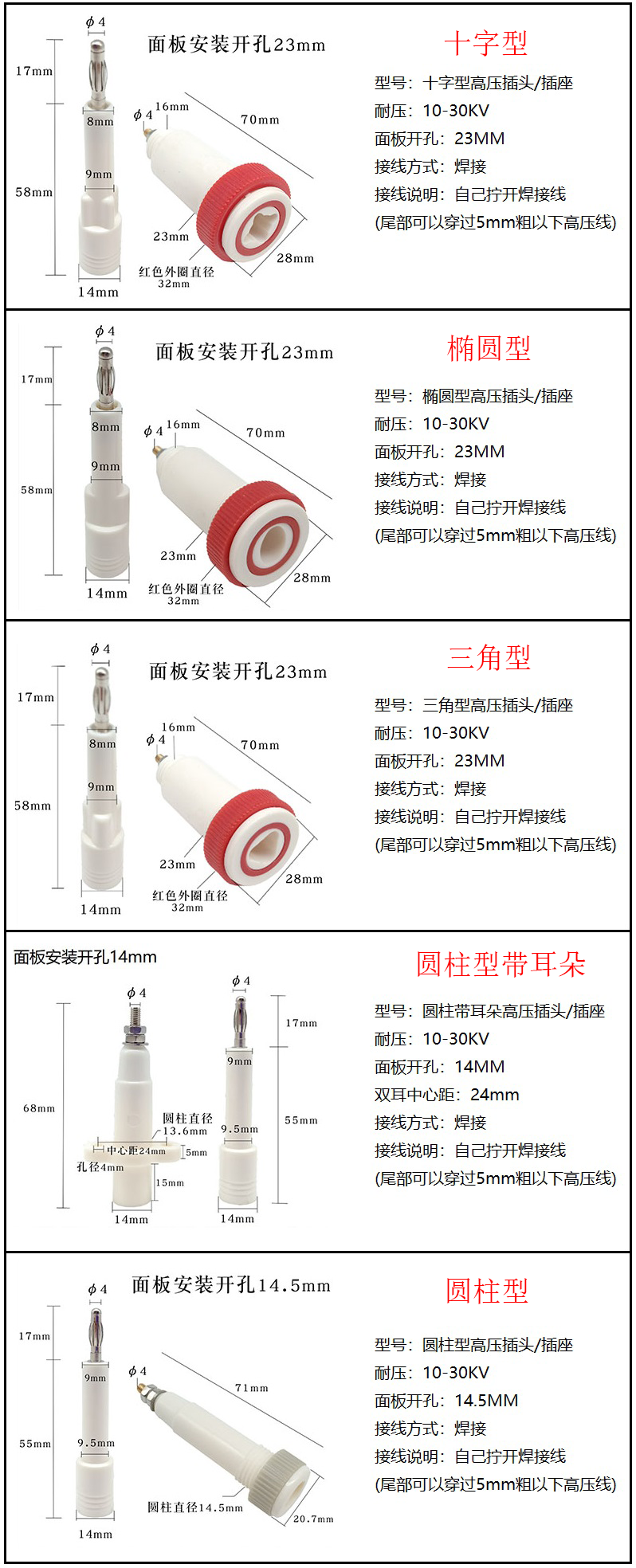10KV-50KV high voltage plug high voltage socket cross oval triangle high voltage plug socket terminal