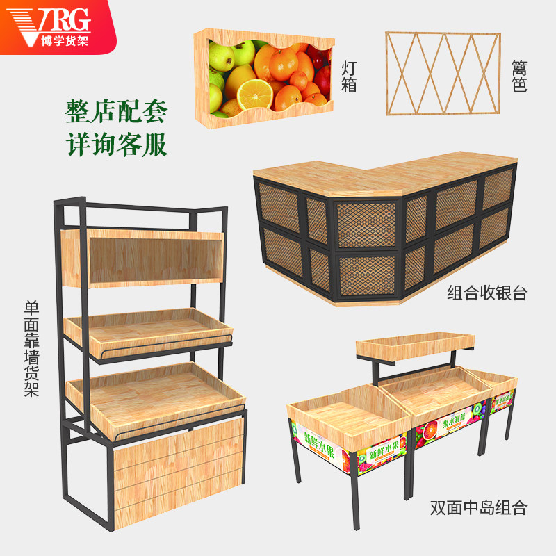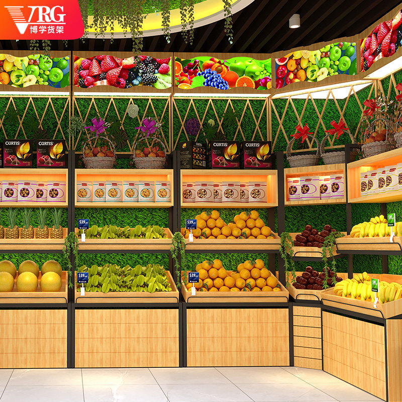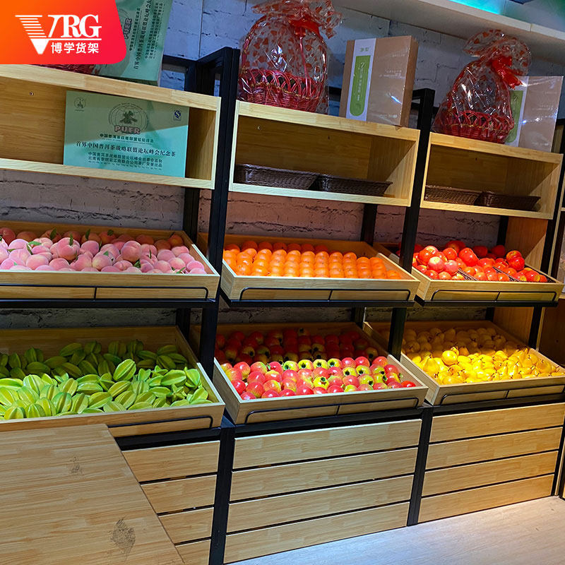 Supermarket Water Fruit Shop Shelves 100 Orchard High-end Creative Steel Wood Single-sided Multilayer Lean-Wall Inclined Triple shelf