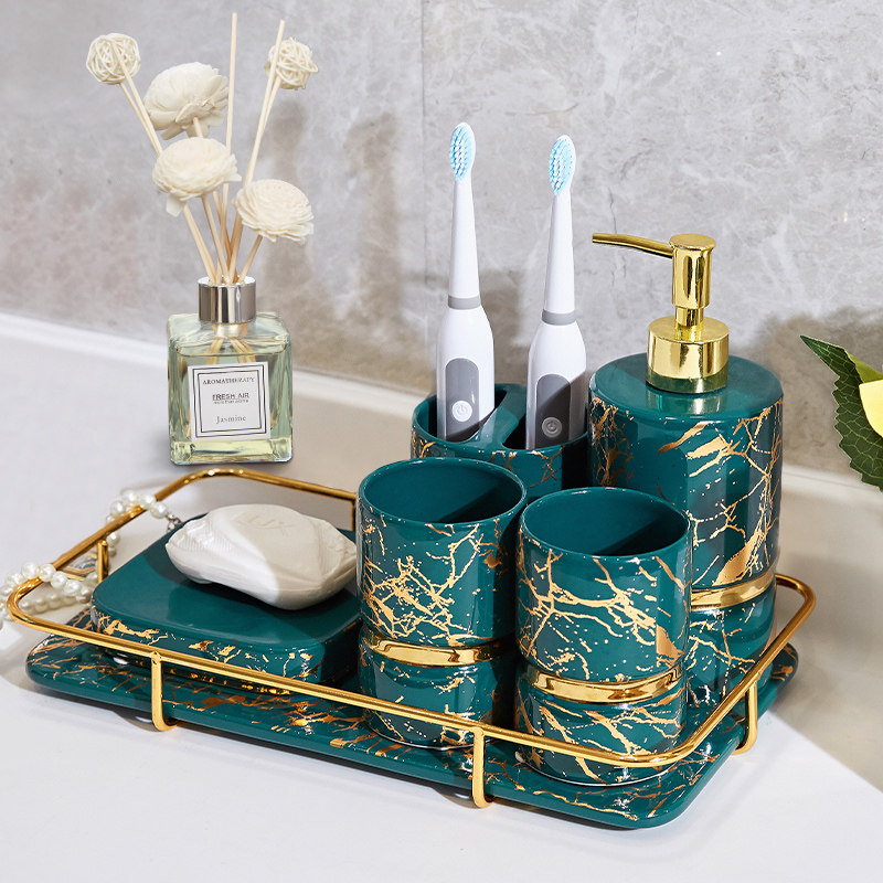 Black gold bathroom six-piece set platinum bathroom five-piece set black gold bathroom five-piece set black gold bathroom seven-piece set green gold tray black gold tray white marble flowerware + dry floral art