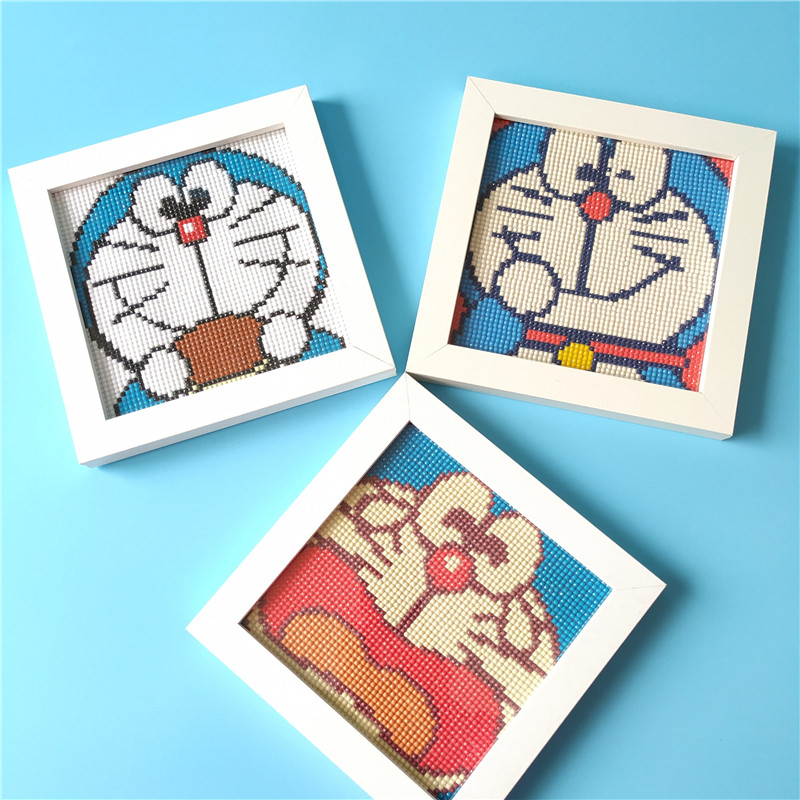 Children's Diamond Painting Point Drawing Sticky Drill Paintings Puzzle DIY Handmade Dang Cat Blue Fat Son with A Dream Boy with frame-Taobao