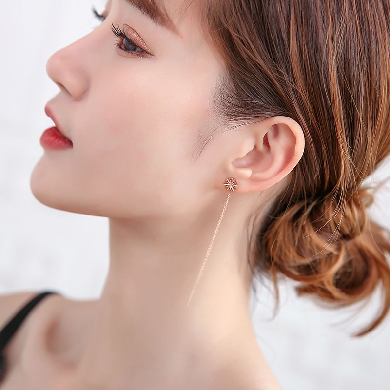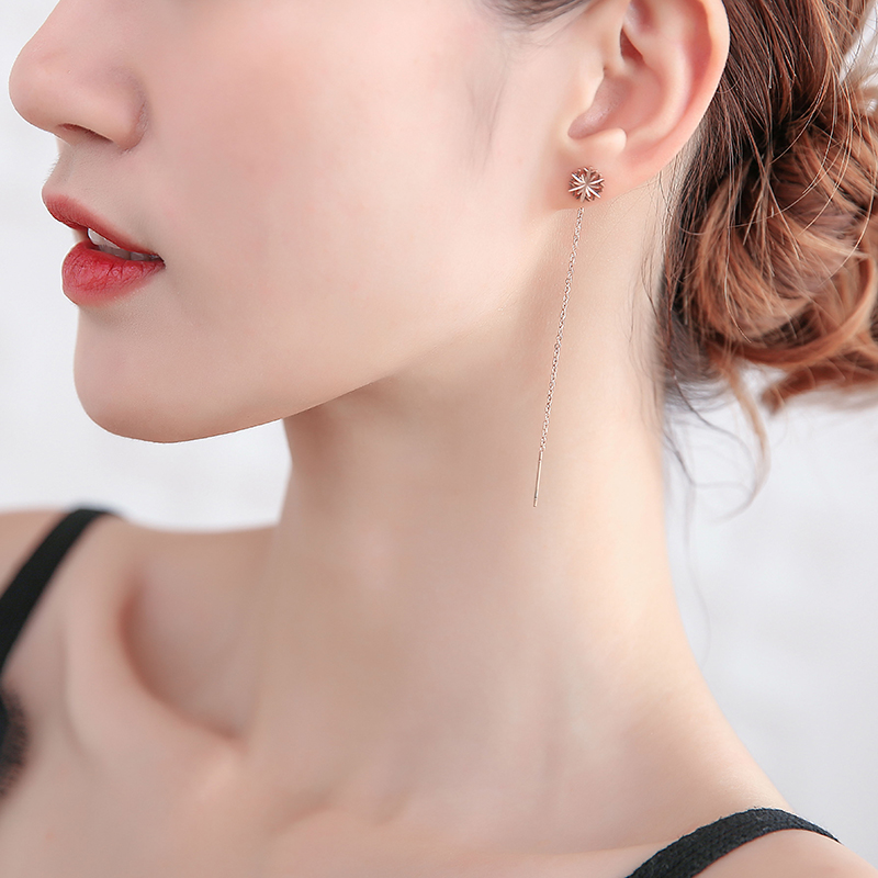 2022 new sweet snowflake titanium steel ear wire tassel long style temperament pull earring Korean hypoallergenic earrings women