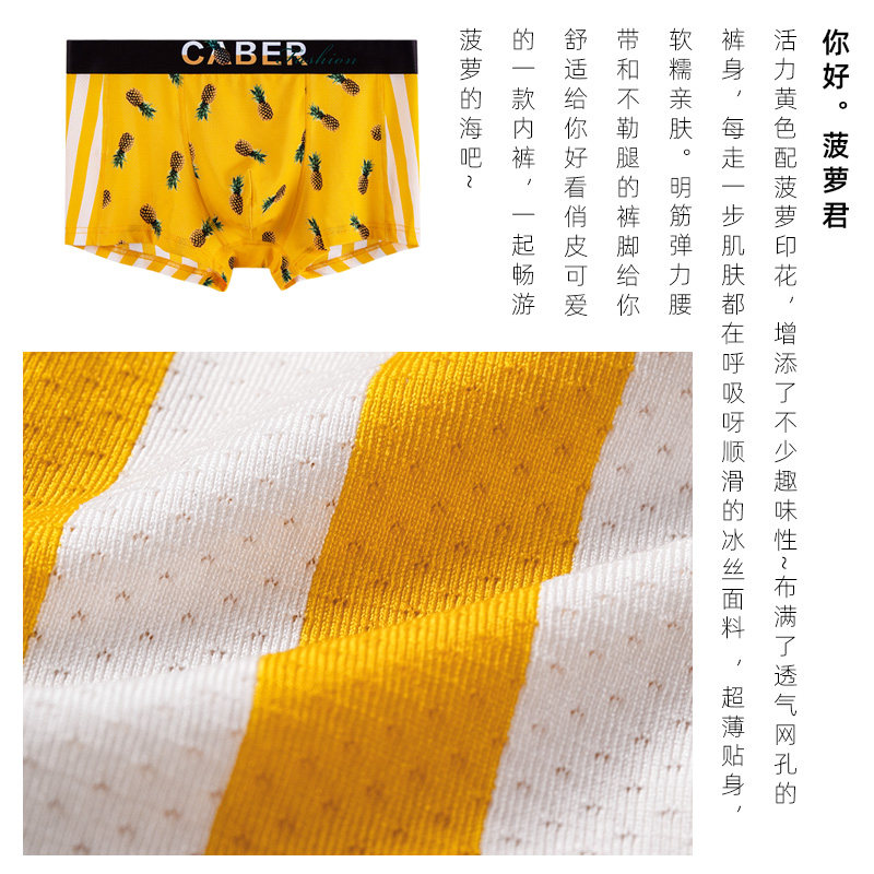 Caboli Lovers Panties Spice Lace Ice Silk Cute Pants Heads Men And Women Flat Corner Thin and Pineapple Fruit Summer