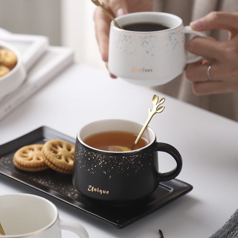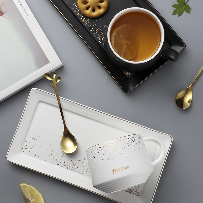 White painted gold gypsophila golden spoon Black painted gold gypsophila golden spoon Elegant white golden spoon Elegant black golden spoon White painted gold gypsophila saucer Golden spoon