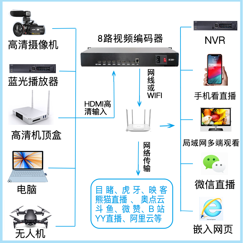 Rack-rack 8-way encoder supports 8-way HDMI RTMP RTSP broadcast push stream NVR ONVIF protocol