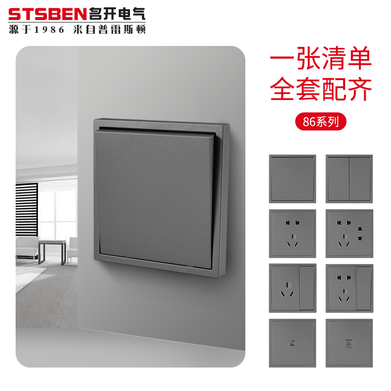 Famous Open Electrical Switch Socket 86 Type Concealed Home Skew 5-Hole Power Socket Grey Misplaced Five-Hole Socket