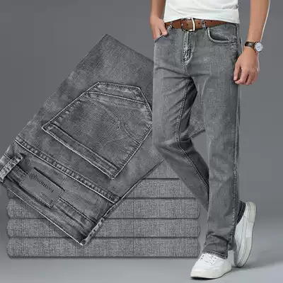 Autumn new gray jeans men's straight loose casual trousers middle-aged brand men's pants spring and autumn trousers
