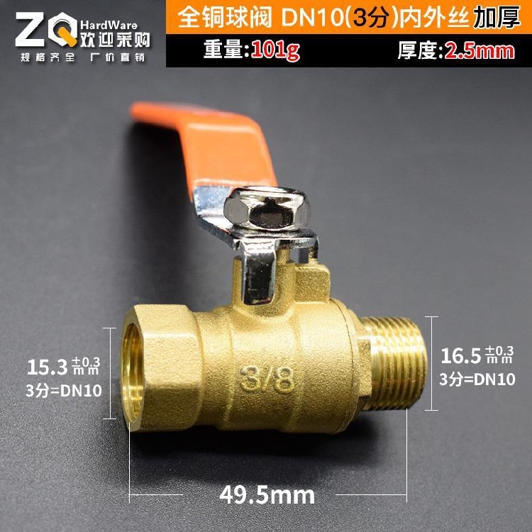 Brass long handle ball valve threaded water pipe hot water domestic wire buckle valve 2 sub-switch 4 points 6 water flow water stop valve