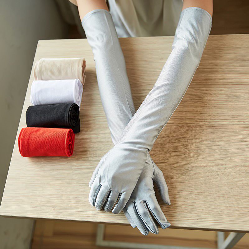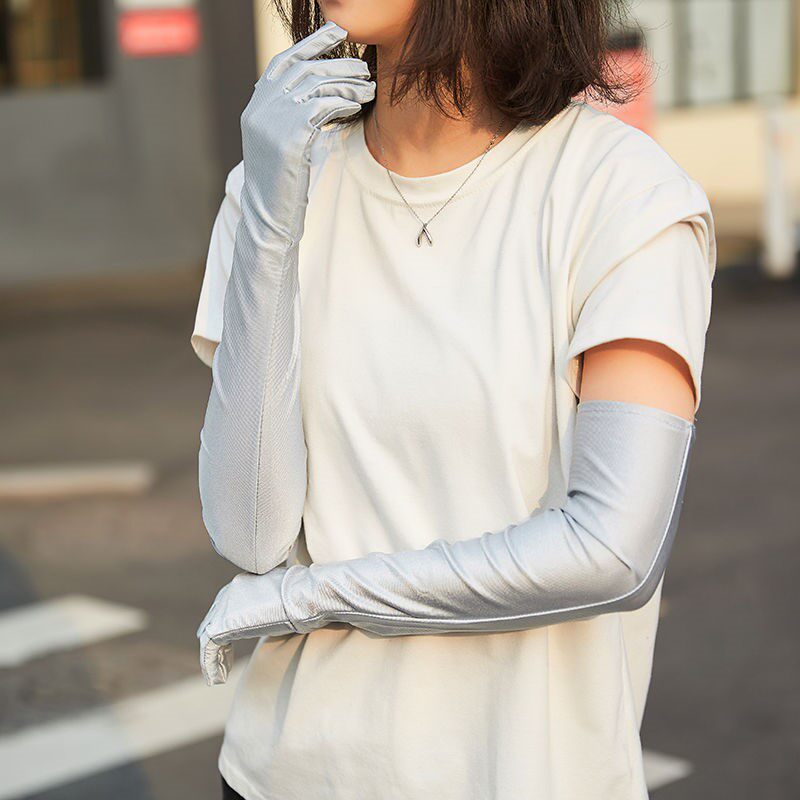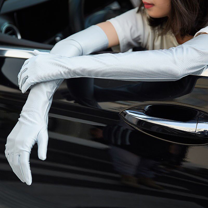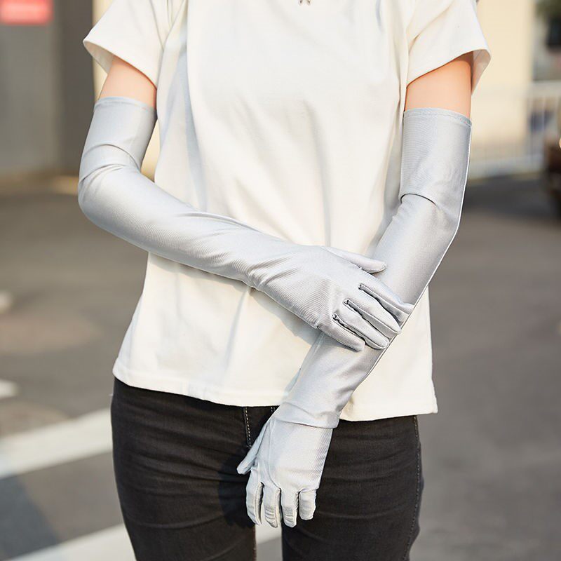 Summer full finger extended sunscreen gloves female Ice Silk arm protection anti UV long sleeve electric car gloves summer