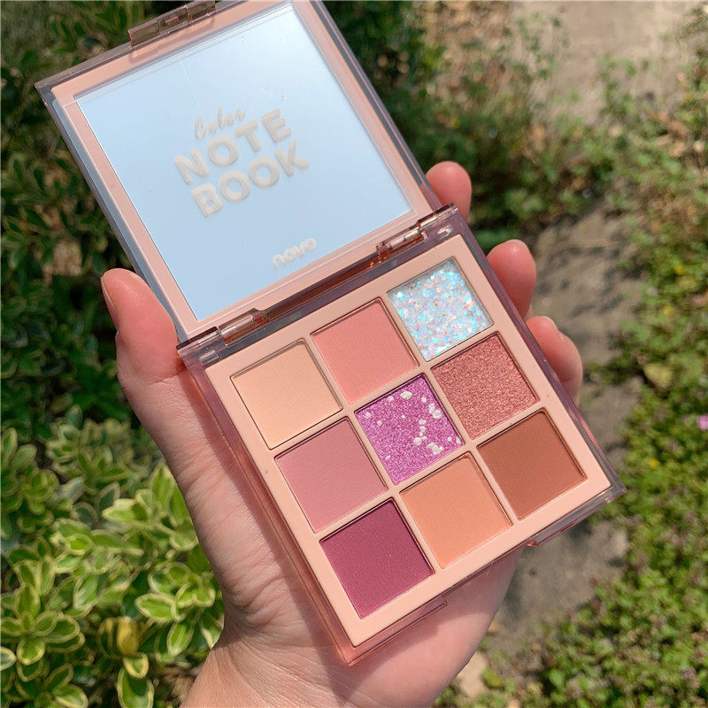 novo notebook nine-color eyeshadow tray ins super fire flash powder pearlescent waterproof earth color small plate portable unicorn