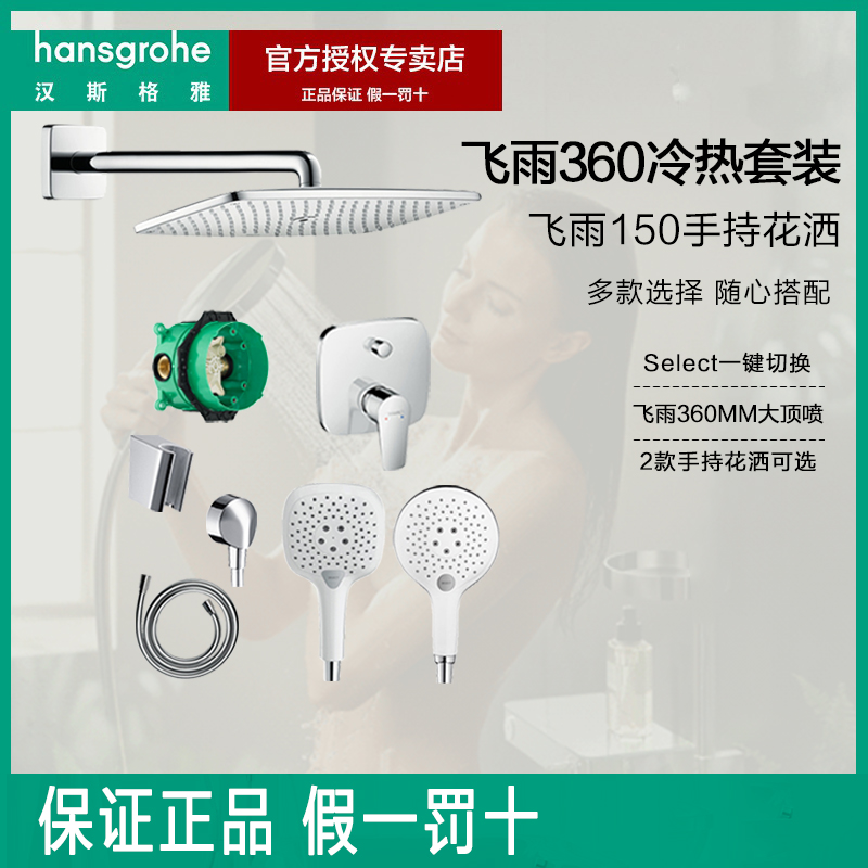Hansgeria, Germany, double rain 360mm dark loaded shower pack into wall shower cold and hot flower handheld