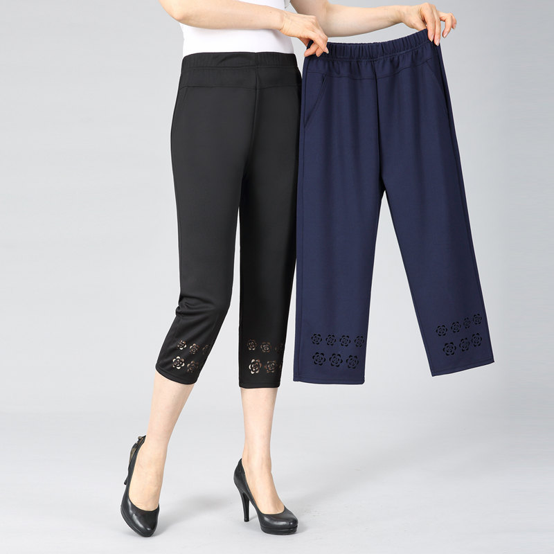 Middle-aged and elderly moms loaded with seven-pants middle-aged women's clothing and summer clothing plus fattening codes for relaxation foreign-style casual pants 2022