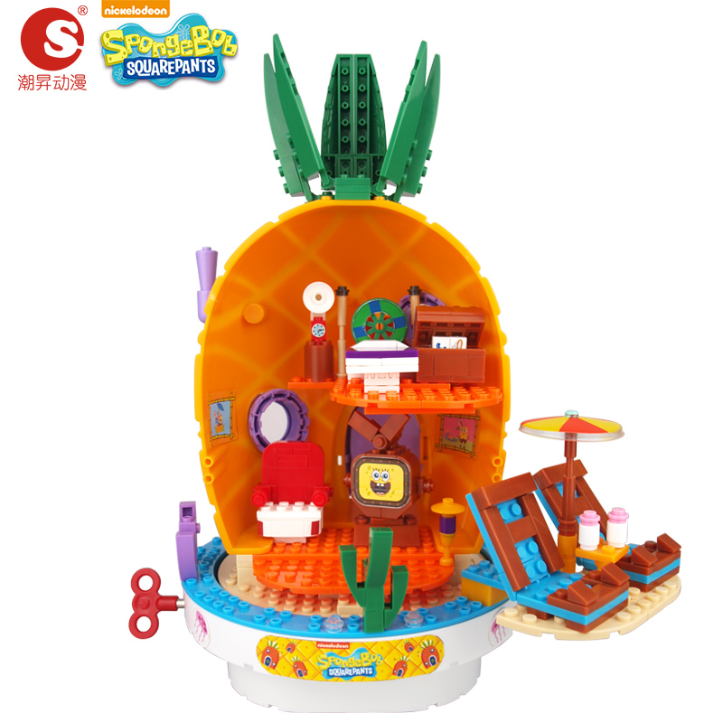 Children's puzzle toy small grain assembled parquet building block tide rise cartoon sponge baby Music pineapple house suit