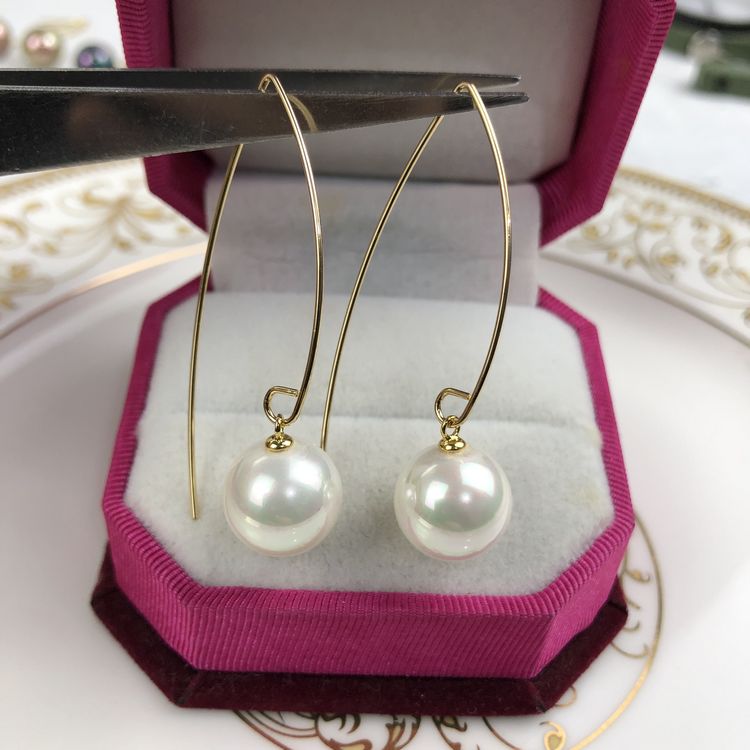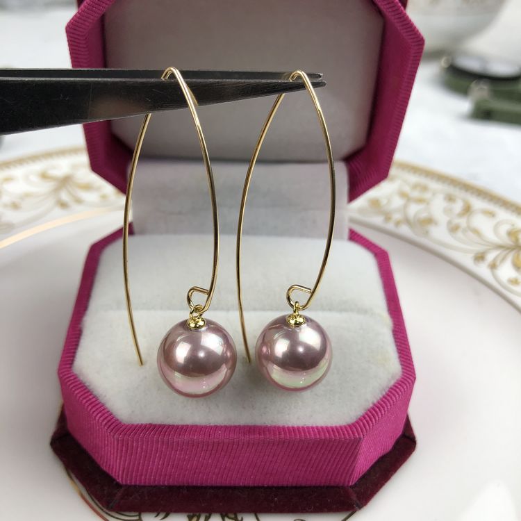Gold V word ear hook white beaded earrings 12mm gold V word ear hook purple bay bead earrings 12mm gold V word ear hook peacock green bay pearl earrings 12mm gold V word ear hook champagne beaded