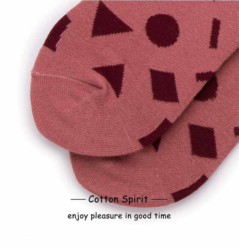 Cotton Spirit Spring Autumn Season Full Cotton Trendy Geometric Pink Couple Midbarrel Socks Men And Women White Hitch Socks