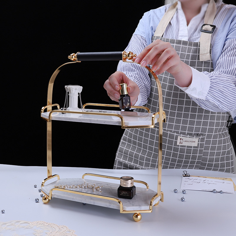 ins Nordic double natural marble tray Dessert table Jewelry display rack European shelf Light luxury