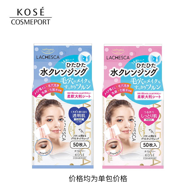 Japan KOSE High Silk Softymo LACHESCA Makeup Remover Wet Paper Towel Clear Moisturizing Large Size Pro Skin 50 Sheet Clothing