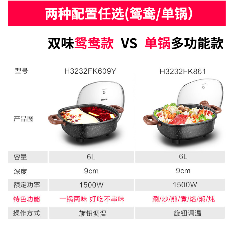 Supor electric hot pot Household multi-functional cooking pot Dormitory electric wok Cooking pot Electric fast cooking pot