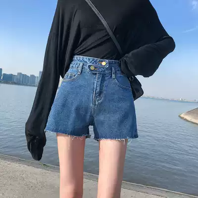 High waist denim shorts women's summer 2021 new loose hot girls show thin hot pants a-line wide leg ins hot pants trend