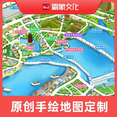 Hand-painted map custom design electronic cartoon scenic spot campus shop wedding route City ancient town realistic